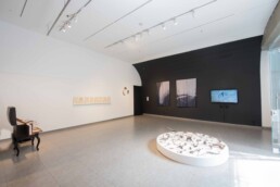 Vista de instalación en Colecciones y Rumores. Parte del ciclo expositivo Presagios de un futuro imperfecto. Salas ArtBo - CCB Sede Chapinero. Bogotá, Colombia. 2023.